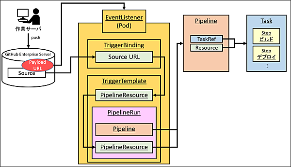 | EventListener | 動的にPipelineを実行するための、外部イベントを受け取るPodを定義 |