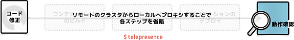 以上のように、Telepresenceはコンテナイメージのビルド・アップロード・デプロイを省略するため、非コンテナ環境と同じような流れで開発できることが分かりました。