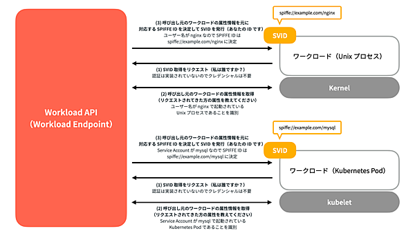 また、Workload APIはどのような環境(オンプレミス、AWS、Azure、GCP、Kubernetesなど)でも機能することが求められています。これによりワークロードがどこで稼働していてもWorkload APIという統一されたインターフェースで自身のSVIDとTrust Bundleを取得できるようになります。
