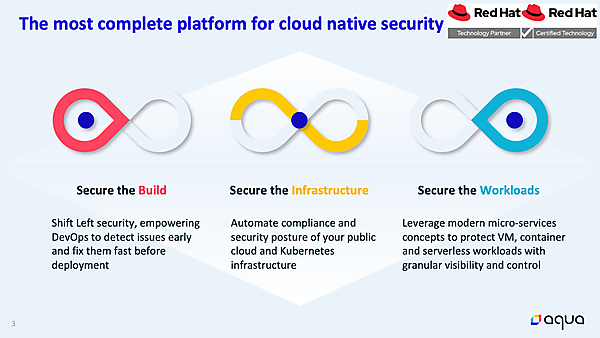 また、レッドハット株式会社 ISVビジネス開発の三島匡史氏は「OpenShiftは単なるコンテナプラットフォームではなく、開発ライフサイクルをすべてまかなえるプラットフォームです。そこで、開発段階からライフサイクル範囲まで寄り沿っていけるAquaが役に立ちます」と語った。