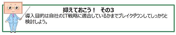 図8で示した要素は、いずれも新しい技術の導入において必ずクリアしなくてはならないポイントです。上長への説明・稟議を通すためにも、これらのポイントは明確に説明できるようにしておきましょう。