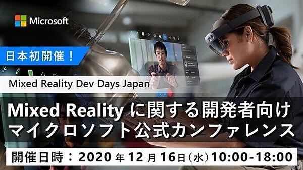 2020年12月16日(水)マイクロソフトは、MRに関する開発者向けカンファレンス「Mixed Reality Dev Days Japan」をオンライン開催します。本カンファレンスは事前登録制で、参加費は無料です。