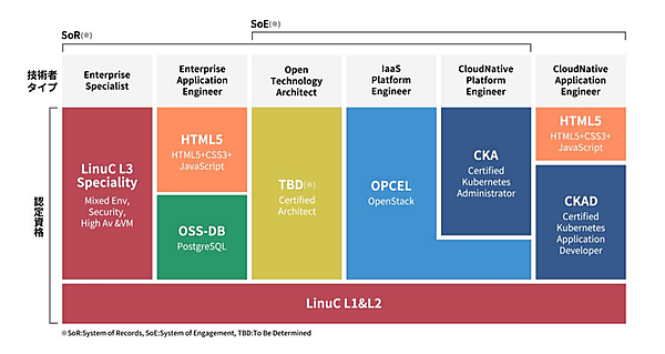 LPI-Japanは、従来から提供しているLinuC レベル1とLinuC レベル2の合格者、およびCKAまたはCKADの合格者に対し、より高度な認定証を追加し、雇用主が求職者のスキルを独立して確認する際に使用できる総合的な認定の提供を予定しています。また、LPI-JapanのLinuC レベル1、LinuC レベル2、OPCELに加えてCKAに合格した人は、新しいCloud Native Platform Engineer認定を取得できるようになるほか、LinuC レベル1、LinuC レベル2と合わせて、LPI-JapanのHTML5認定試験およびCKADに合格した人は、新しいCloud Native Application Engineer認定を取得できるようになります。