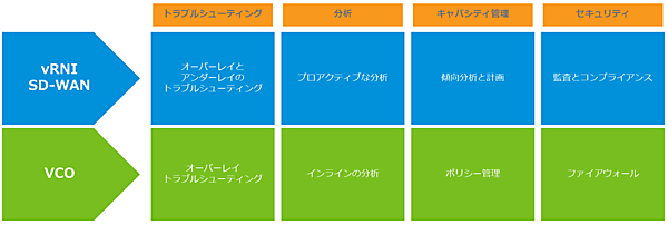 VMware SD-WANでは、SaaS提供される「VMware SD-WAN Orchestrator」による一元的な運用管理を実現していますが、さらに高度な運用管理を実現するために「vRealize Network Insight」との連携が可能です(図1)。