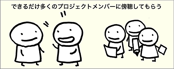 傍聴者向けのチラシには「ユーザーの発言に飛びつかないように」という旨を記載しておき、「ユーザーの『意見』より『行動』に着目する」ことを促すようにします。