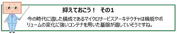 この2つのメリットを活かした機能ごとのスピーディな開発と変更により、ビジネスの状況変化に素早く対応でき、必要な時に必要な分だけ開発の人的リソースやアプリケーションを動かすための環境、つまり物的リソースに適材適所で投資できます。ただし、このようなメリットを得るには課題も多いのです。