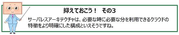 広義のサーバーレスは、サーバーレスという言葉から「サーバが全くない」ような印象を受けますが、実際には存在します。利用者側はリソースを意識せず、クラウドベンダーが提供するマネージドサービス利用するためサーバーレスと呼んでいるのであり、クラウドベンダー側がそのサービスを動かすためのサーバを管理してくれているのです。