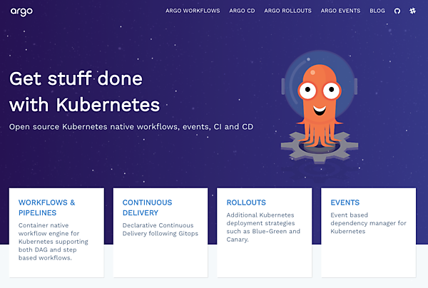 なお、Cloud Native Trail Mapでは、CI/CDを実現するKubernetesネイティブツールのセットの1つとして「Argo」を紹介しています。Argoはプロジェクトの名称で、その下に「Argo CD」「Argo Workflow」「Argo Events」「Argo Rollout」というサブプロジェクトがあります。ArgoはKubernetesネイティブなワークフロー、イベントおよびCI/CDツールです。