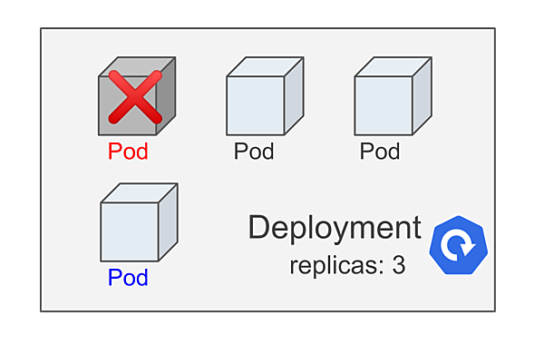 KubernetesではPodを作成することでコンテナを起動しますが、単一のPodを起動するだけでは耐障害性やスケーリングなど、Kubernetesの恩恵を受けることができません。もしPodが起動しているノードに障害が発生したらPodも同時に停止してしまい、サービスが提供できなくなってしまいます。アップデートすることもできません。