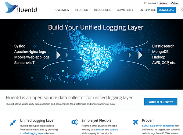 Fluentdは、プロジェクトの主要スポンサーであるトレジャーデータ社の共同創業者、古橋貞之氏により考案されました。公式サイトによれば5,000社以上のデータ駆動型企業が利用しており、5万台以上のサーバーからデータを収集しているそうです。