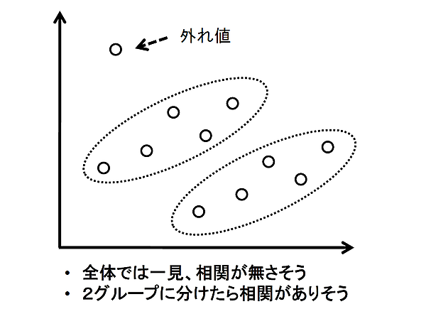 - データの集団を異なるグループに分けられる可能性がある