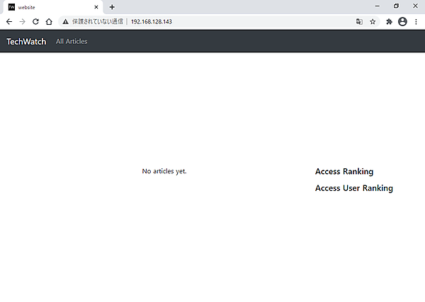 この状態で、ブラウザにクラスターからアクセスすると、以下のように、まだ記事もランキングもデータがないため表示されません。