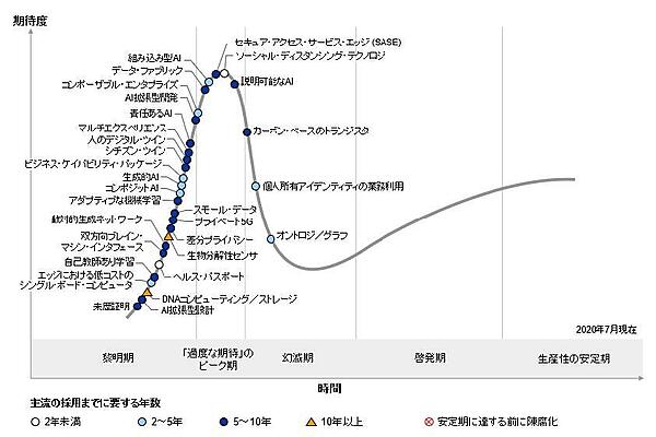 | 過度な期待のピーク期 | 組込型AI(Embedded AI) 説明可能なAI(Explainable AI) |