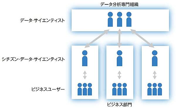 このような役割を果たすシチズン・データ・サイエンティストが各ビジネス部門に配置されることによって、データ分析の組織・体制はどのように変化するでしょうか。