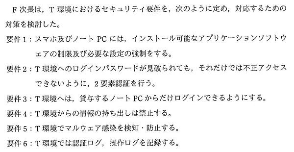 設問2 本文中の下線③について,ノートPCを介して持ち出す方法を30字以内で具体的に述べよ。