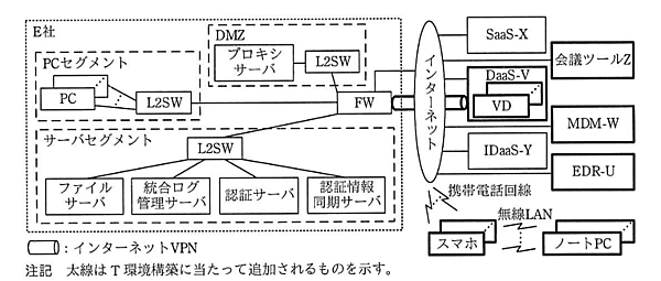 下線⑨:申請が許可された利用者のノートPCについては,E社のネットワークとインターネットVPNでの接続を可能とする