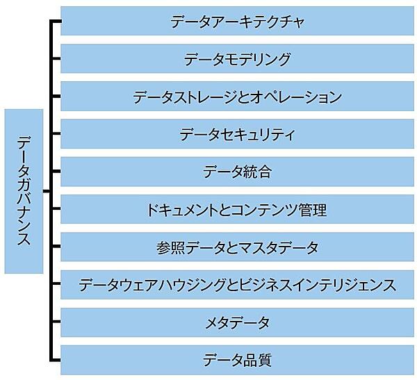 DMBOKでは、データマネジメント全体を11の領域に整理しています。その中でも「データガバナンス」はデータマネジメント全体の一貫性を保つためのものとして位置づけられています。