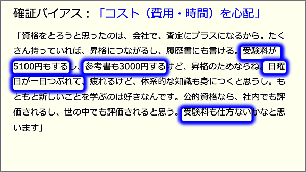 もしあなたが「コスト(費⽤・時間)を⼼配」という仮説を立てていたならば、発話録は次のように感じられていたはずです。