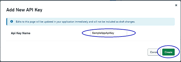 - [Api Key Name]に任意の値を入力して[Create]ボタンをクリックする