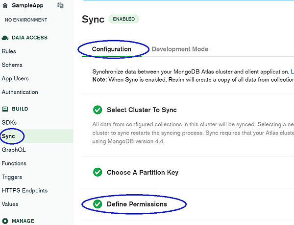 サンプルプログラムでも上記の様なパーティションを想定しており、それをRealmアプリに設定する必要があります。