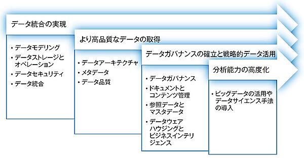 前回は、データ統合の実現プロセスやパターン、さらには利用されるツールなどについて説明しました。今回は、データマネジメント高度化のステップについて説明します。