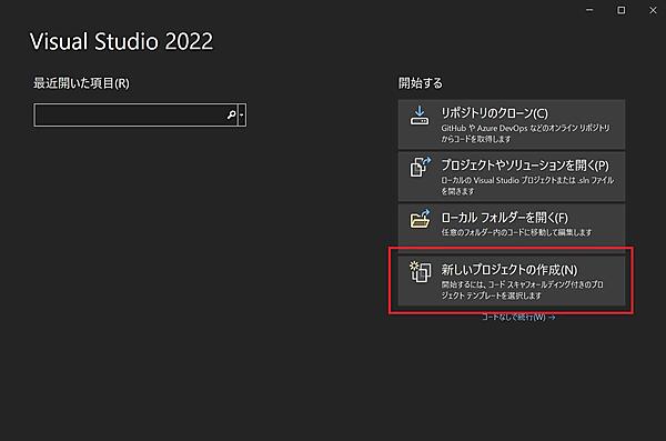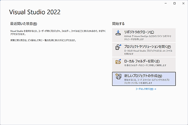 Visual Studio 2022のインストールが完了したところで、アプリ開発テンプレートを使用してモバイルアプリケーションプロジェクトを作成します。