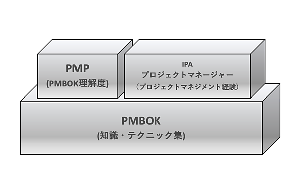 そして、このPMBOKの重要な部分を詳しく把握できていることを認証する仕組みがPMP制度です。PMPを持っている方はちょうど旅行ガイドブックが全て頭に入っており、適切な旅行プランを立てたり、計画通りに旅行を推進したりする旅行会社の社員の方のようなイメージです。なお、IPAが実施する情報処理試験のPMは、さらにその上を行くイメージです。旅行会社のパンフレットなどでも、ベテラン添乗員と行くツアーや、ちょっとランクの高いホテルやレストランが旅程に組み込まれたツアーだと、旅行知識だけでなくマナーやトラブル時の対処法を熟知した旅行会社の方もいらっしゃると思います。それと同じで、IPAの情報処理試験で試されるのは単なるプロジェクトマネージャーの知識だけでなく、いくつか与えられた「よくあるシチュエーション」の中から、自分だったらどのように問題や課題を解決したか、などを論文形式で論述が要求されます。逆の言い方をすれば、プロジェクトマネージャーが知っておくべき知識を元にプロジェクトマネージャーを目指すならPMBOKを参考にすれば良いし、実際の事例を多く学び、そこから自分のマネジメントを確立するのであれば、IPAの情報処理試験での論文サンプルを大量に読み込むことでプロジェクトマネージャー業務を理解できると思います。