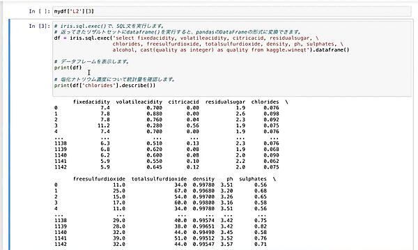 このように、IRIS上にある多種多様なデータをストレスなくNotebook側で取得できます。データを取得してデータフレームに入れてしまえば、あとは多彩なPythonライブラリを活用して自由に分析が行なえます。