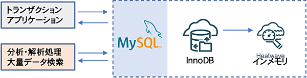 - HeatWaveの利用の有無はMySQLのオプティマイズで自動的に制御するため、クライアント側での処理の判定や接続先の切り替えは不要
