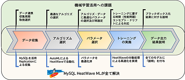そして、2022年4月からはMySQL HeatWave MLとして、上記メリットをそのままに機械学習の提供を開始しました。今回から3回に渡ってMySQL HeatWave MLの概要や使用方法を解説していきます。