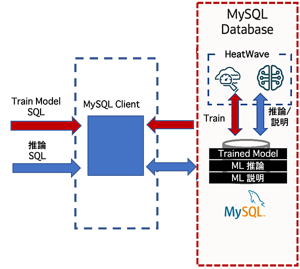 MySQL HeatWaveの処理性能が最も顕著に表れる場面です。インメモリ・並列処理を活かしてトレーニング時間の短縮を実現します。