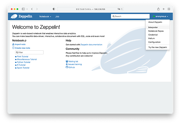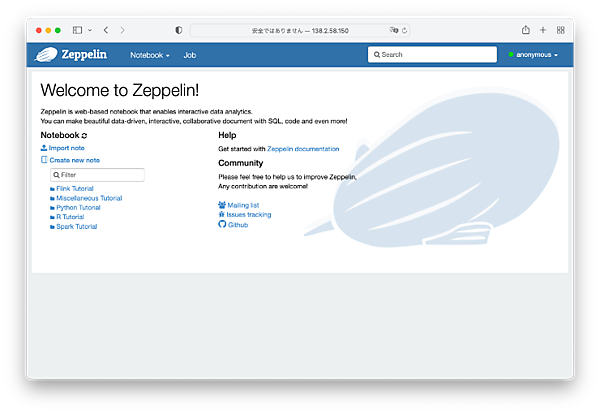 Zeppelinは、データ駆動型のインタラクティブなデータ分析とSQL、Scala、Python、およびRとの共同ドキュメントを可能にするWebベースのNotebookです。