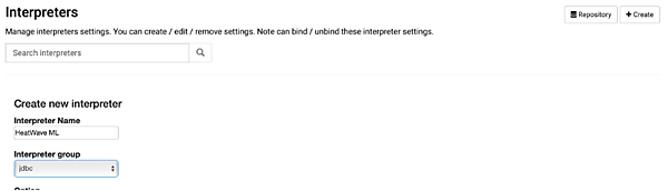 - MySQL HeatWave ML接続用のJDBCインタープリターを作成します。