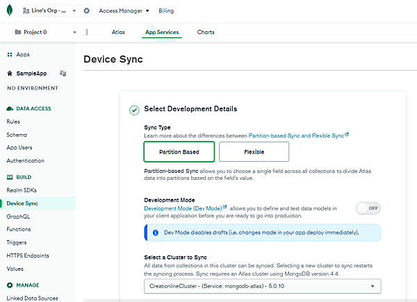 - MongoDB Cloudの [App Services] から前回まで使っていたアプリを選択して [Device Sync] タブを開きます。