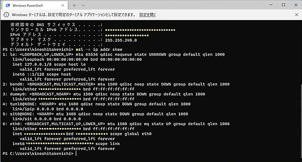 7. 設定したら再びWindows Terminalでキーボードより下記コマンドを入力しENTERキーを押して設定を確認します。