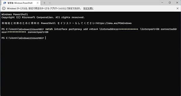 6. Windows Terminalにキーボードより下記コマンドを入力しENTERキーを押して、Windows マシンへのアクセスをWSL2へ転送するように設定します。
