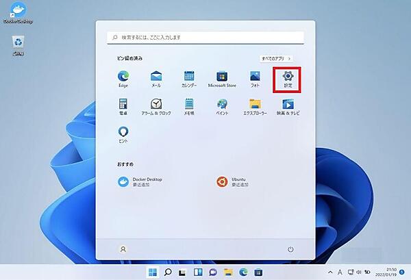 3. 表示されたウィンドウ右上の「設定」をクリックします。