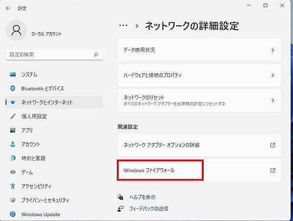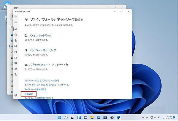 7. ファイアウォールの設定ウィンドウが表示されるので「詳細設定」をクリックします。