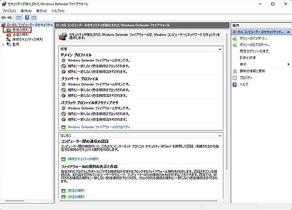 9. ファイアウォールの詳細設定ウィンドウが表示されます。