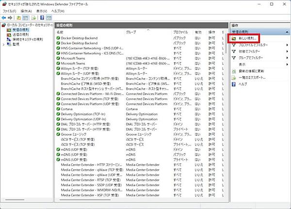 先に記述した手順でWindows マシンへのアクセス要求をWSL2に転送できるようにしました。しかしそのままでは外部マシンからWindowsマシンへのアクセス要求はWindowsにインストールされているMicrosoft Defenderのファイアウォールで拒否されてしまうため、外部のマシンからアクセスを受け付けるように設定を変更します。