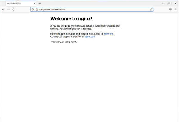 8. ブラウザーに URLを入力して起動したnginxのDocker コンテナにアクセスできるか確認します。