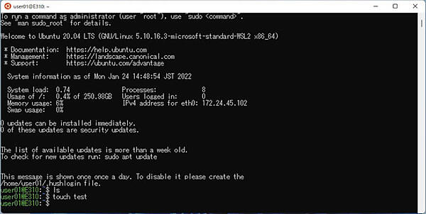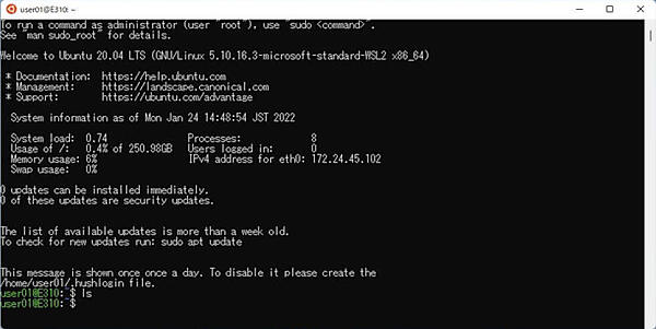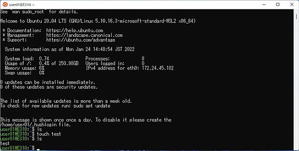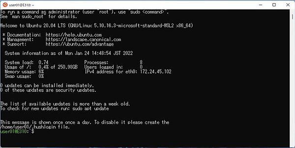 4. Ubuntuターミナルが起動します。