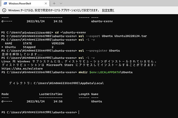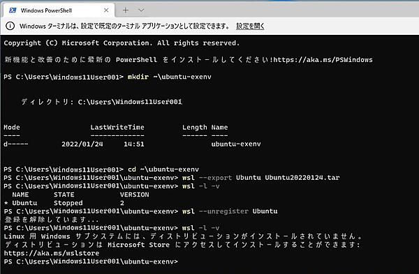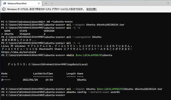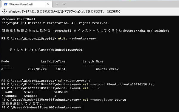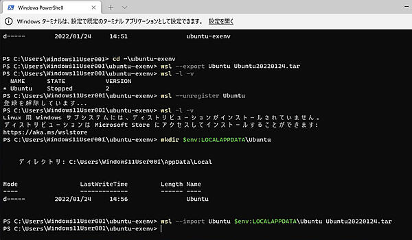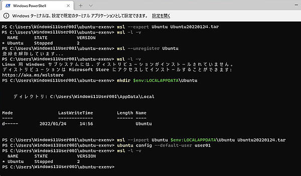 WSL環境をエクスポートし、別のシステムにインポートすることで、今まで使っていた環境を利用することが可能です。