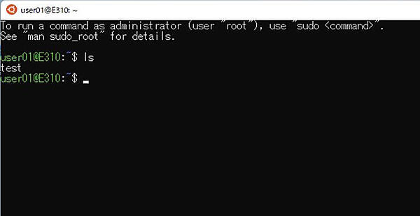 7. Ubuntuターミナルで下記コマンドを入力しENTERキーを押してファイルが作成されていることを確認してUbuntuターミナルを閉じます。