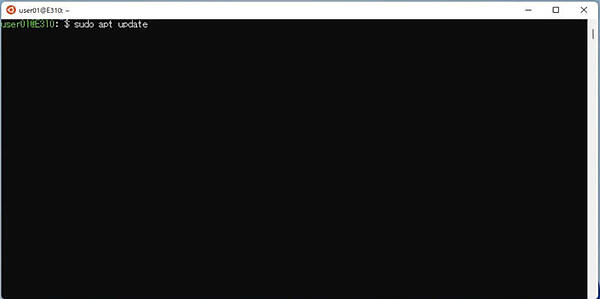 5. Ubuntu ターミナルでキーボードより以下のコマンドを入力しENTERキーを押してパッケージ情報を更新します。