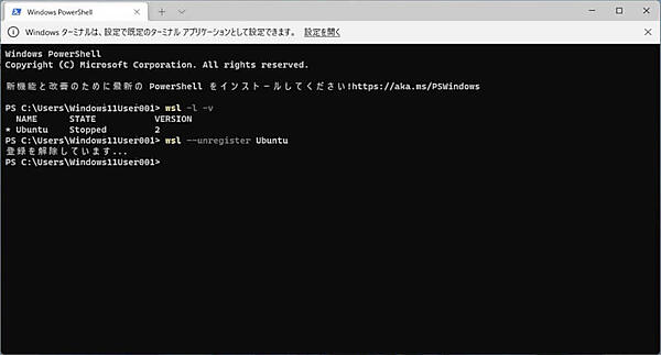 WSL2環境の削除