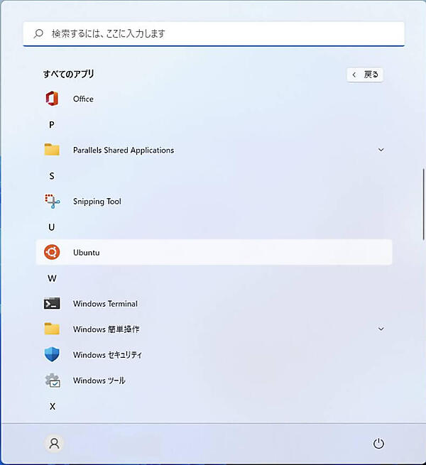5. アプリ一覧の「Ubuntu」を右クリックします。