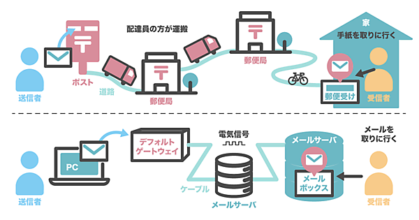 郵便とメールの配送の仕組み