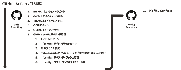 下図は、デモ構成で確認したGitHub Actionsが処理するCIの構成です。