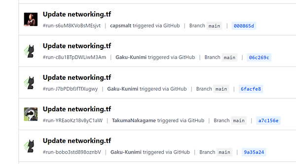 Terraform Cloudを導入すると、簡単にGitHubと連携できます。もしパケットフィルタを変更したい場合、GitHub上のコードを変更するだけで、あとはTerraform Cloudが自動的にその変更を読み取り、環境に構築してくれるのです。誰がいつ、どのような変更を行ったかはTerraform Cloud上に履歴が残るため、作業記録の監査も容易です。